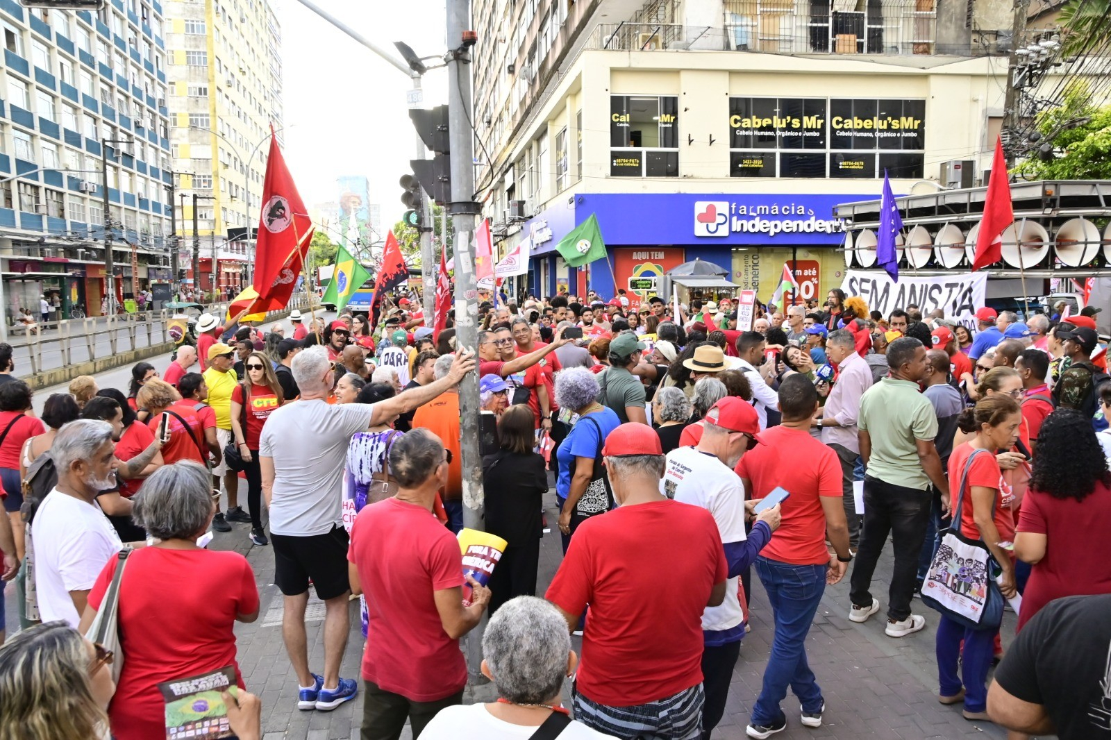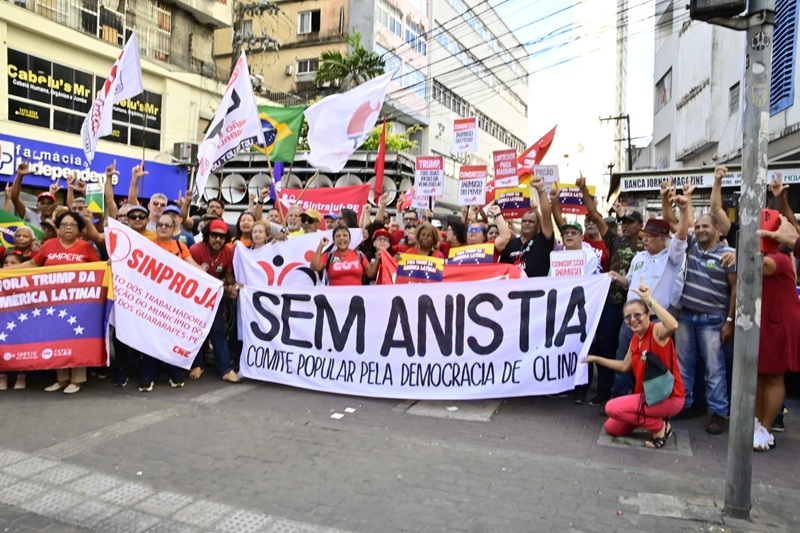 No Recife, um ato público foi organizado para celebrar a prevalência da democracia brasileira, reforçar a condenação dos responsáveis pelos ataques de 8 de janeiro de 2023 e expressar resistência às tensões políticas e econômicas impostas pelos Estados Unidos. foto